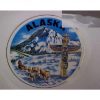 Alaska… Souvenir Collector Plate. Plate measures approximately 10 1/2″ diameter. White plate with embossed verge and gold edge depicts a picture of the mountains, an eskimo dogsledding with dogs and a totem pole with the words ALASKA in black bold print. Very nice plate; however, it does have a chip on the bottom edge (see photo). In good, used condition.